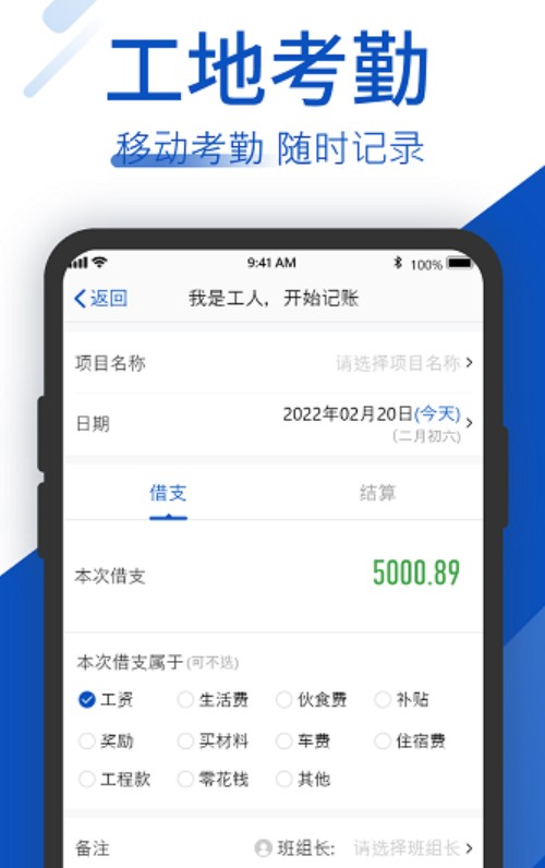 精确工地记账:提供员工借支结算记录,工地记账一目了然;