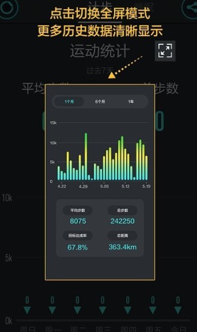 统计分析您的每天、每月的运动数据,历史数据一目了然