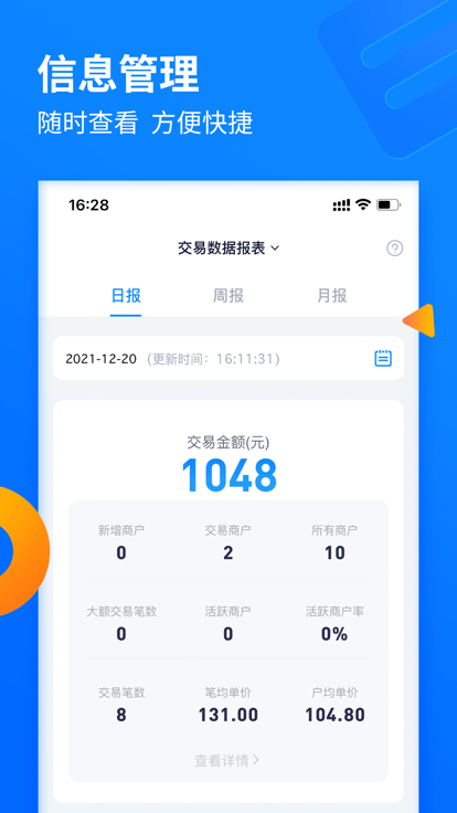 交易信息清晰透明,数据实时查询,收款自动语音播报