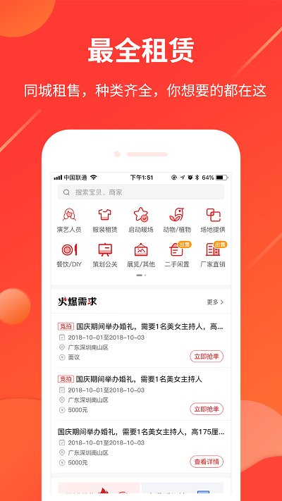可以随时接单,发布需求,即时沟通,为广大用户提供便捷、优惠、有保障的舞台搭建及周边服务。