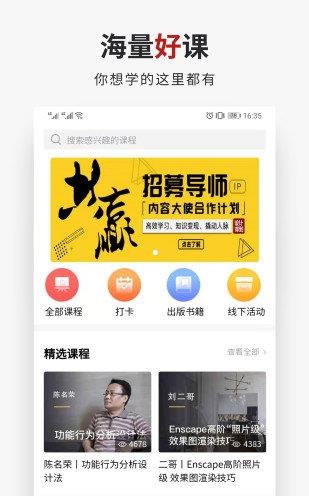 设计得到app是一款专为设计行业爱好者而打造的学习软件,该软件提供大量的免费课程视频和学习资料,各种出版的电子书资源,还能进行相互沟通交流,学习更多的设计经验.感兴趣的朋友可以来下载.