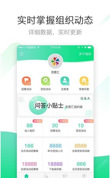 志愿汇组织版可能是北半球最大的志愿服务公益平台,汇聚了6000多万志愿者,40多万公益组织;“志愿汇”可能是志愿者、公益组织使用频率最高的App之一,让志愿者随时随地了解公益活动,让公益组织高效招募管理志愿者。