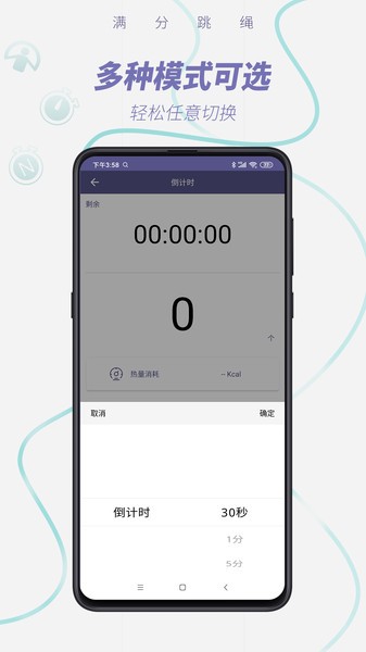 2、系统还能为用户倒计时,实时掌握跳绳的时间,根据提示即可让运动者快速停止,记录跳绳的数量。