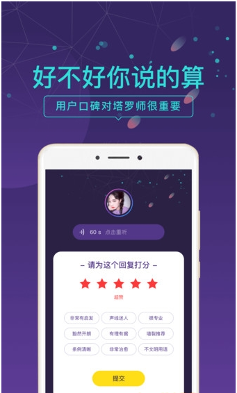 解答专业:每位为您解惑的塔罗师都是通过专业、严格筛选认证的。并且我们有严格的淘汰机制,塔罗师好不好,您说的算。