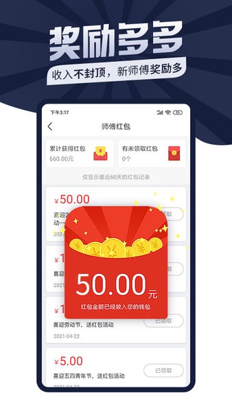 新师傅奖励多,入驻奖励接单奖励,红包拿不停!