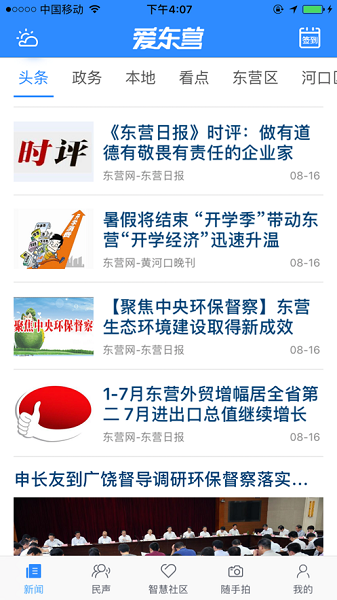 爱东营为东营地区的人民提供了各种便捷服务,能够查看最新的本地要闻,提供了便民生活和政务服务,能够随手拍下身边有趣的事情和不文明的行为,可以及时了解本地的活动安排,还能在线举报和爆料。