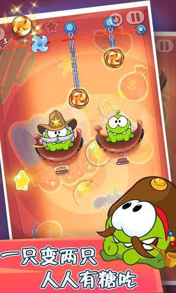 2.图片非常卡通,易于操作。只要用手指割断绳子,绳子上的糖果就会掉进怪物的嘴里。