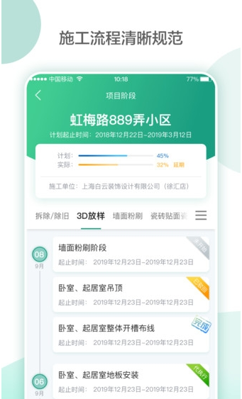 亮宅是施工过程的导航,为各方设定了流程节点控制提醒,标准化验收,工期管控提醒;