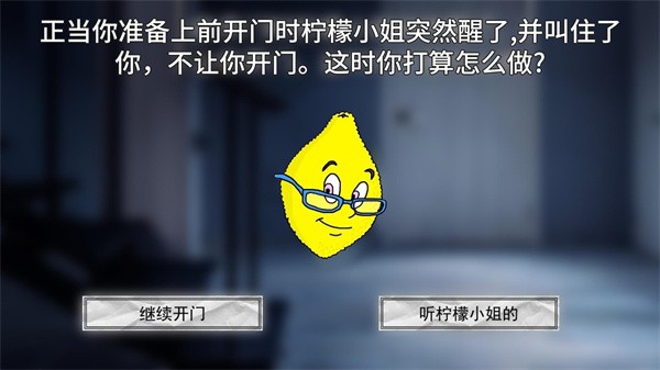 《恐怖柠檬小姐》是一款文字解谜游戏,游戏中你要在柠檬小姐的手中存活过一晚,小心的选择让她开心的选项,稳住她的情绪,千万别让柠檬小姐生气!