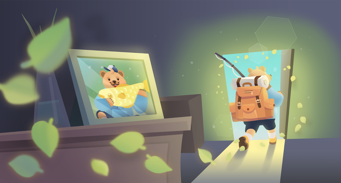 为刚离开城市的一头孤独的熊交朋友。点击以钓到鱼。提示点可以打开更多的钓鱼场所,并邀请动物朋友在那里。