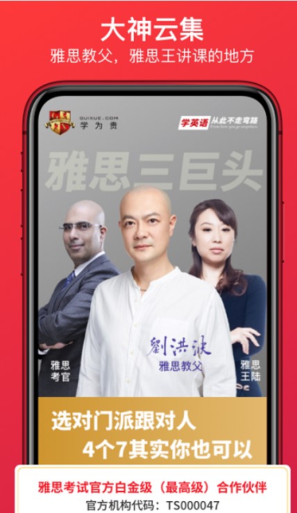 学为贵雅思APP提供最新、最实用的雅思课程和听力、口语、写作、阅读全方位培训服务,我们是最好的雅思教育体系GETS。 我们只按成绩说话。 在国内,10个雅思9分,8个来自我们。 我们有最好的老师。 雅思教父刘洪波、雅思王陆在我们这里。