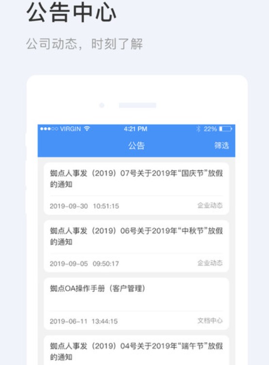 2.企业通知公告,员工、领导可以实时知道企业的工作安排信息和放假通知;