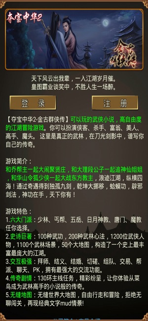 可以玩的武侠小说,高自由度的江湖冒险游戏。