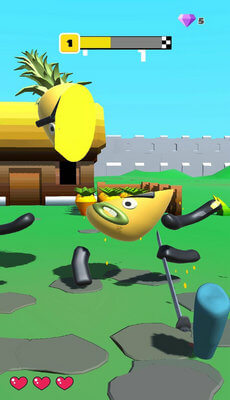 3、你需要控制自己的小人去砍伐各种蔬菜和水果,完成各种不同的挑战,更好的消灭它们。