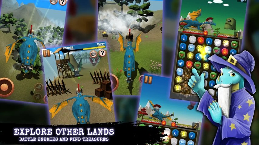 2、宠物龙2探索未知的世界,获得更多的资源,增强自身和战斗力;
