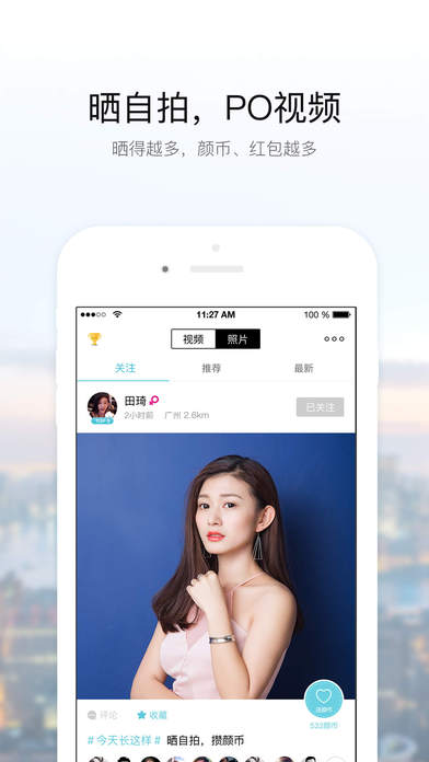 1、晒自拍,攒颜币:晒得越多,颜币越多;