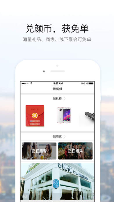 2、兑颜币,获免单:10颜币等于一元,海量礼品、商家可免单;