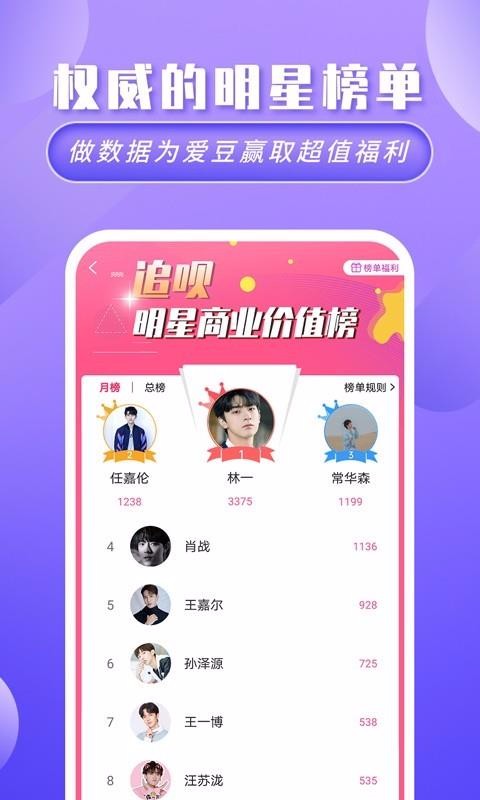 2、非常权威的明星榜,能为自己赢得许多超值福利的爱心豆等;