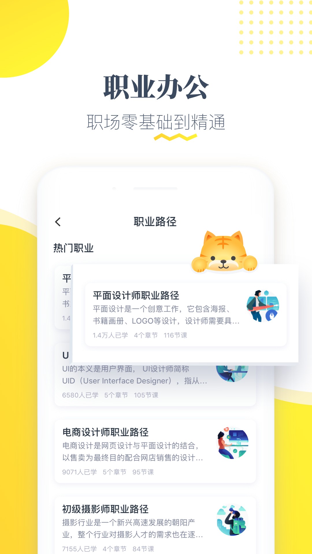 《虎课》是由财牛教育科技有限公司打造的一款学习软件,平台为用户提供海量高清短视频教学以及配套图文教程,而且每天还有每日免费学习的机会哦!是不是很棒那还在等什么,赶紧下载吧!