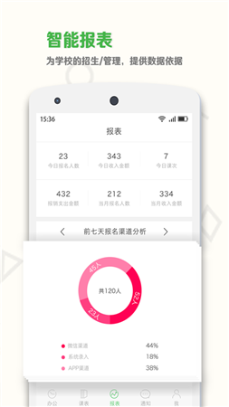 ●上课签到 学生考勤一目了然,在移动端甚至还能通过APP和微信,将考勤信息,通知学生家长,告别传统电话通知方式。