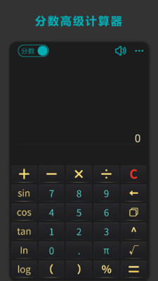 分数高级计算器软件安卓版是非常好用的手机计算器app,支持在手机上进行分数、函数等的计算,非常的科学智能,有详细的计算历史记录,适用范围非常之广泛,学生、财务等均可使用,欢迎有需要的朋友下载体验!