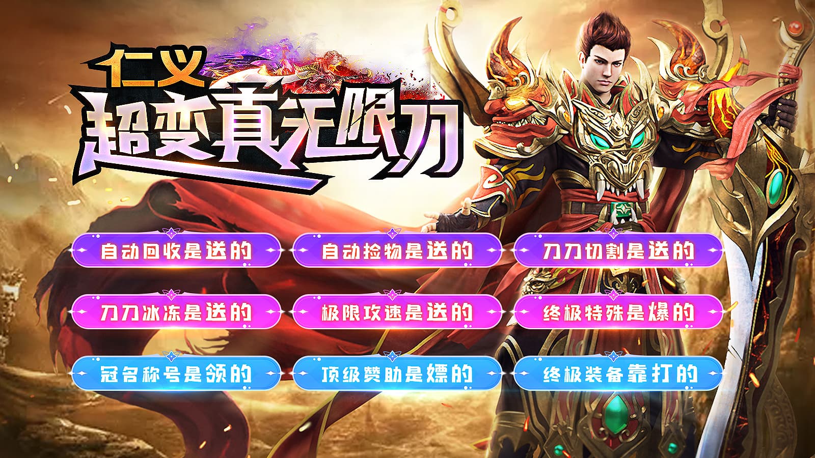 仁义超变真无限刀手游官方版是一款热血刺激的复古传奇手游,游戏通过精彩的故事情节和各种惊险刺激的任务,让玩家感受到浓厚的江湖氛围。玩家可以通过升级武器,装备和技能来提升自己的实力,在战斗中取得胜利。游戏还提供玩家与其他玩家组队冒险,一同闯荡江湖的机会,为玩家带来更多的乐趣。游戏画面精美,操作简单,让人沉浸在古代侠义的世界中。