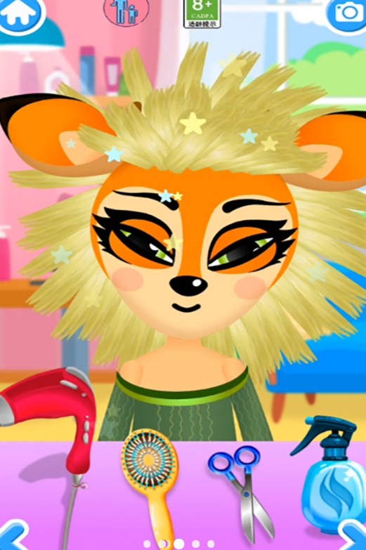 1、选择你喜欢的小动物,使用各种理发工具,如剪刀、吹风机等,为它们理发。