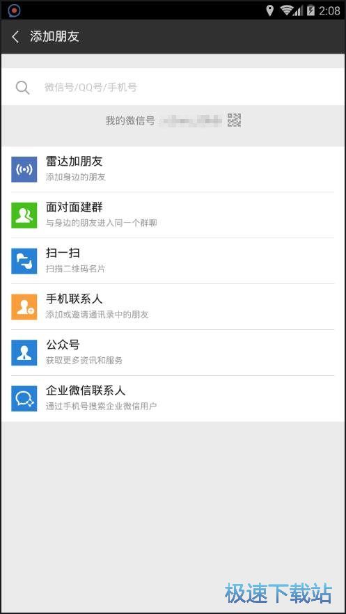进入添加好友功能界面,我们可以使用搜索微信号/QQ号/手机号、雷达加朋友、扫一扫、手机联系人添加微信好友。小编选择使用搜索手机号码的方法添加好友。点击微信号搜索框,即可输入手机号码;