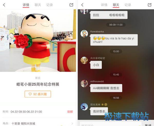 选择自己喜欢的主题之后,软件会自动向你推送相应的活动或展会的内容,比如在一些演唱会中,你还可以有机会获得演唱会门票。除了找到喜欢的活动之外,同一个活动还可以和报名的其他网友聊天交流,找到志同道合的朋友,形成兴趣和交友的闭环。