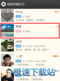 点击“附近”界面右上角的“群组”,然后在列表中点击其中的群组进入群组资料界面,在界面的最下面有一个“群组成员”栏,点击进去后选择你想要添加的好友,对其进行关注即可。(如下图所示)