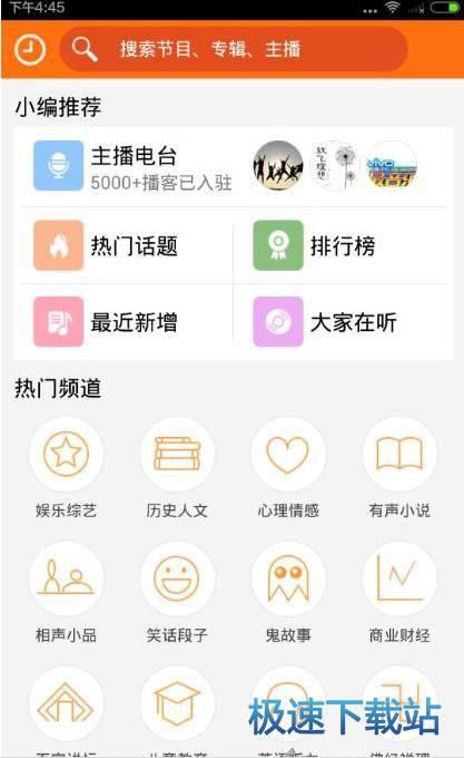 节目丰富,热门频道中包括娱乐综艺,历史人文,心理情感,有声小说,相声小品,笑话段子,鬼故事等等,当然你可以编辑属于你自己的频道分类,你喜欢的可以添加,不喜欢的也可以删除。