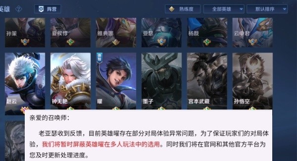 曜作为王者荣耀里的战士英雄,具有多段位移的能力,容易进场切到敌方后排,强化技能不仅伤害高,而且具有高额回复效果,是为数不多的操作性非常强的战士型英雄。而近期在正式服中,曜遭到官方下架,玩家无法在对局中使用曜,官方发出公告称曜存在许多bug,为保证游戏公平性,进行下架调整。