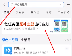 1、首先我们需要打开支付宝,在搜索框输入【绿色出行周】。