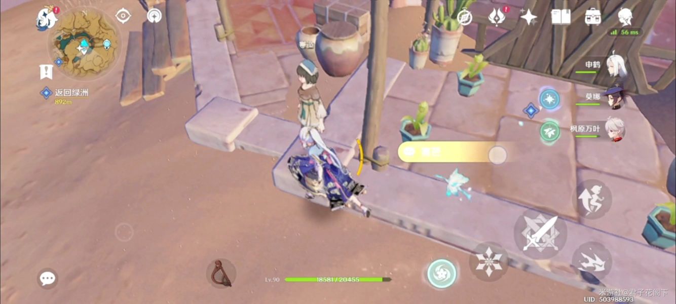 继续对话接取任务之后,用草元素角色对三个蔷薇花盆继续施肥。