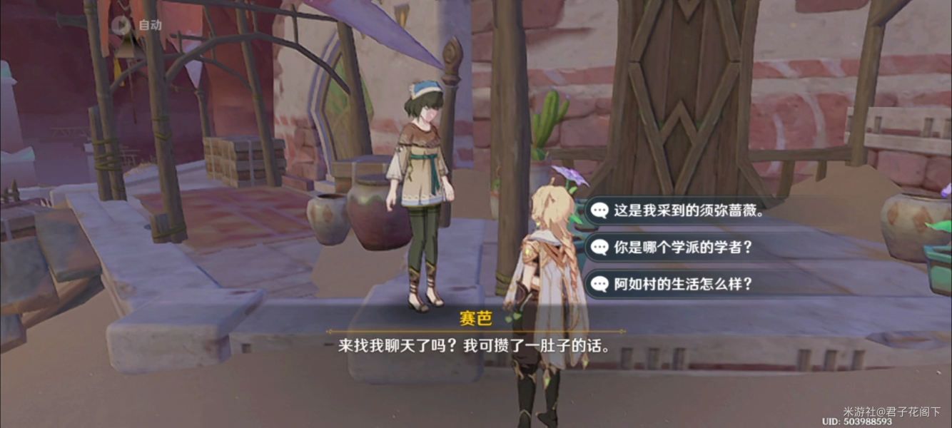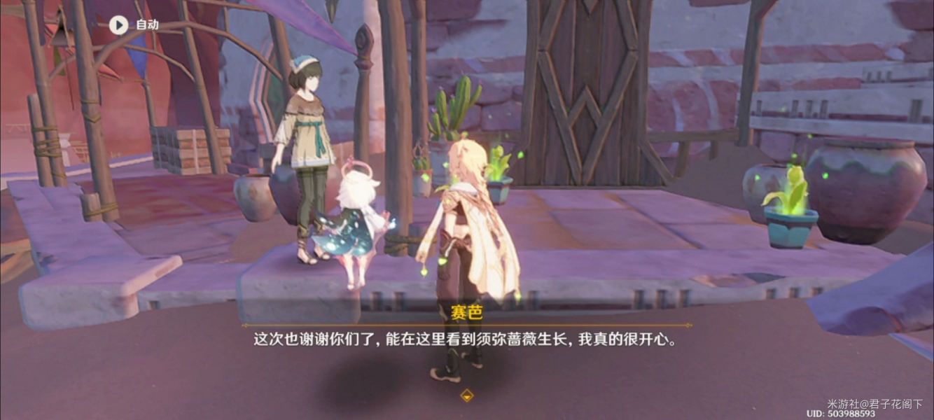 在对话过程中可以得到一朵来自赛芭德1须弥蔷薇。