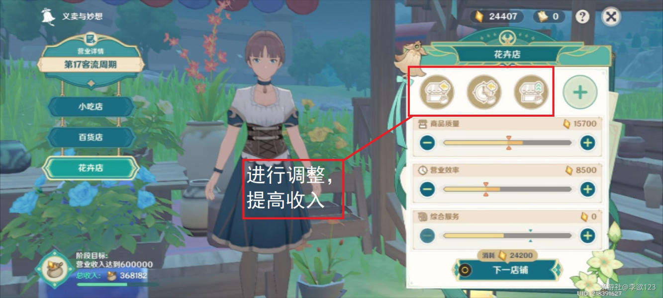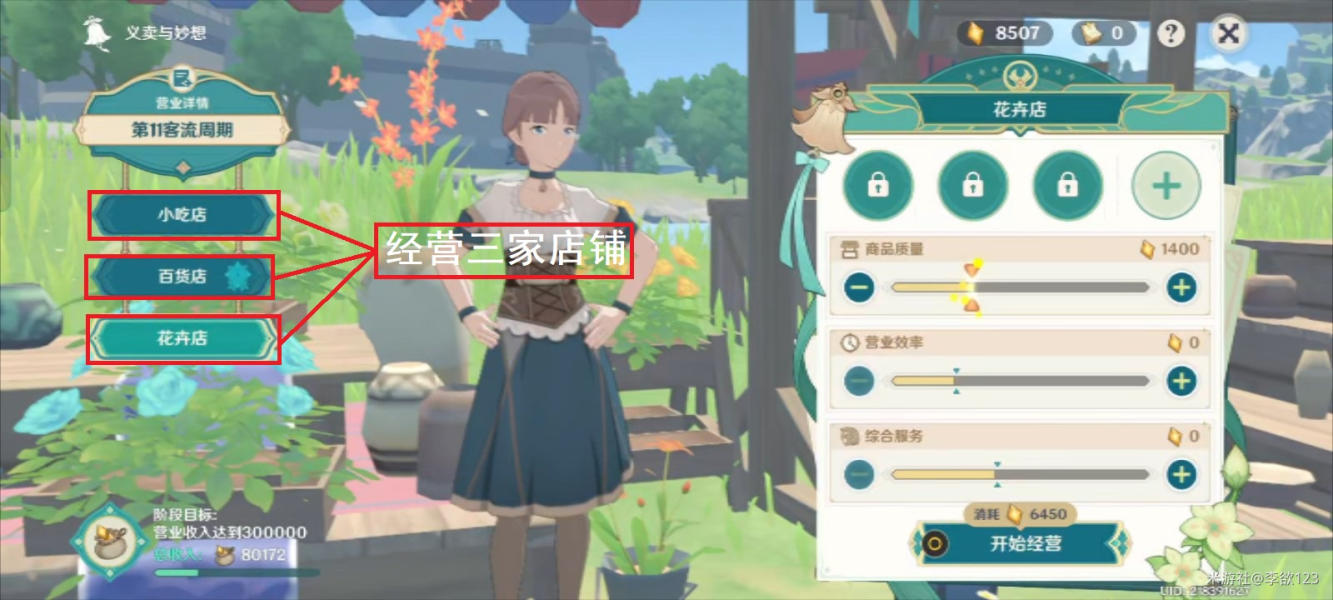 会开启义卖联盟 拥有杂货店 小吃店 花卉店三家店铺