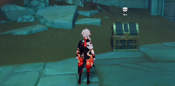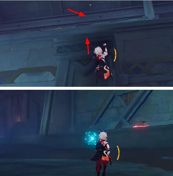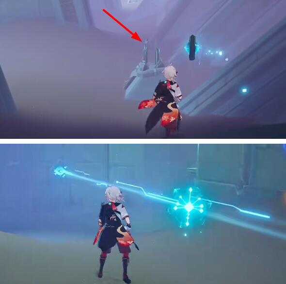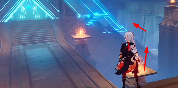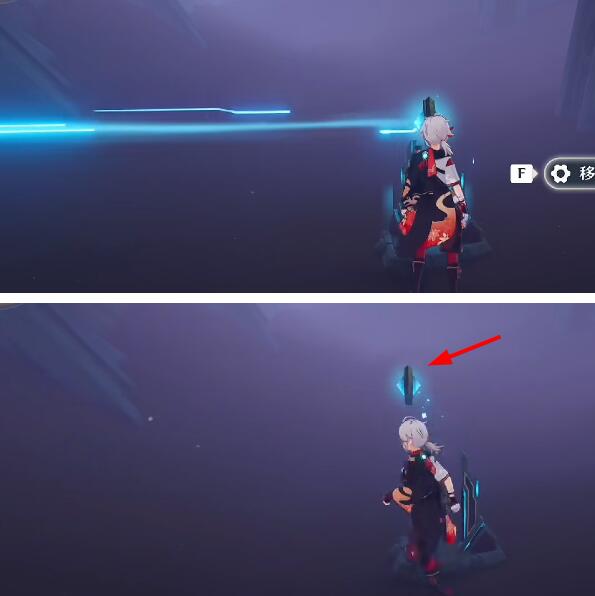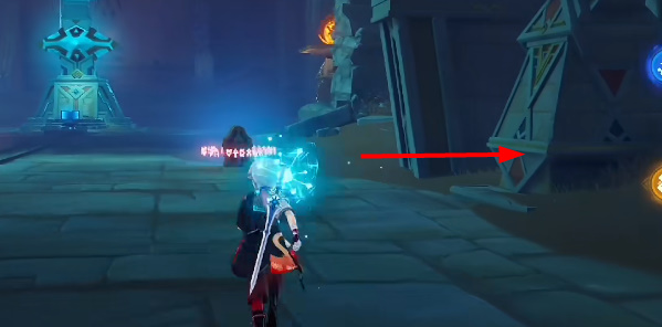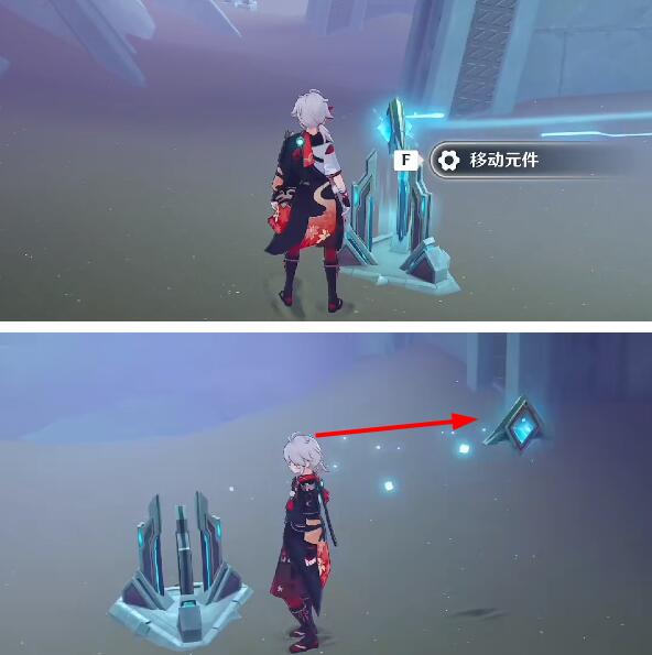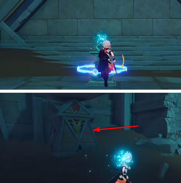 6、我们当光球移动到元件上,需要将它释放一直跟着它,直至没入宝箱旁石柱。