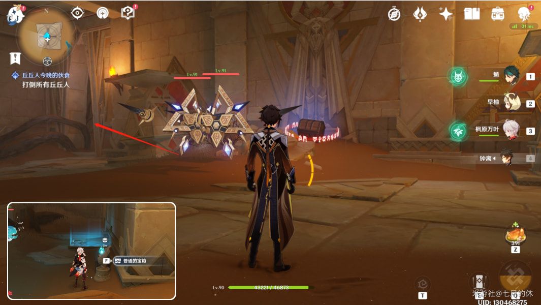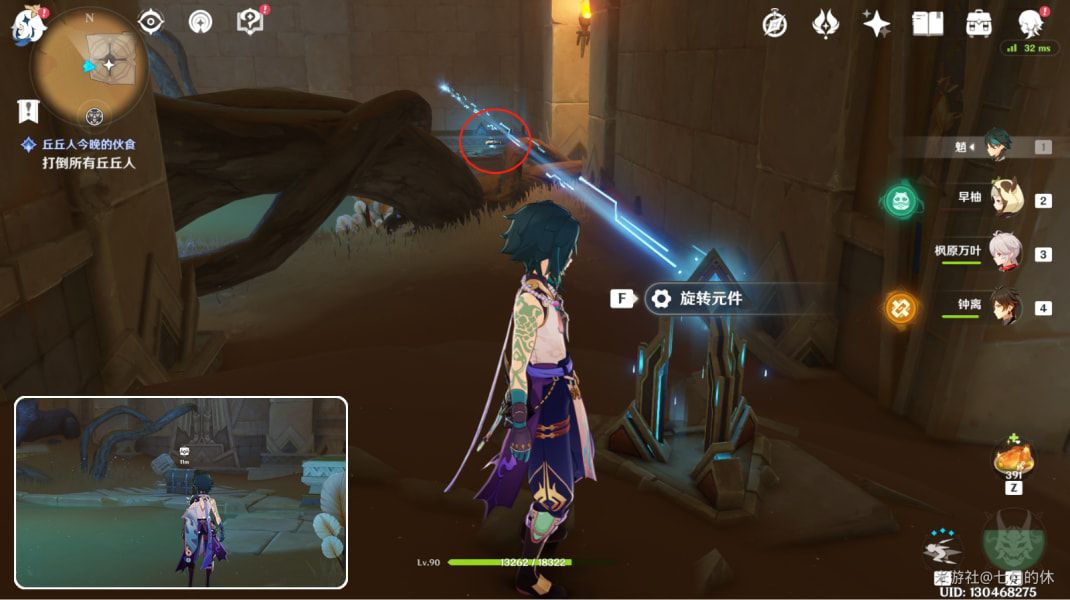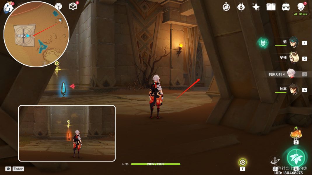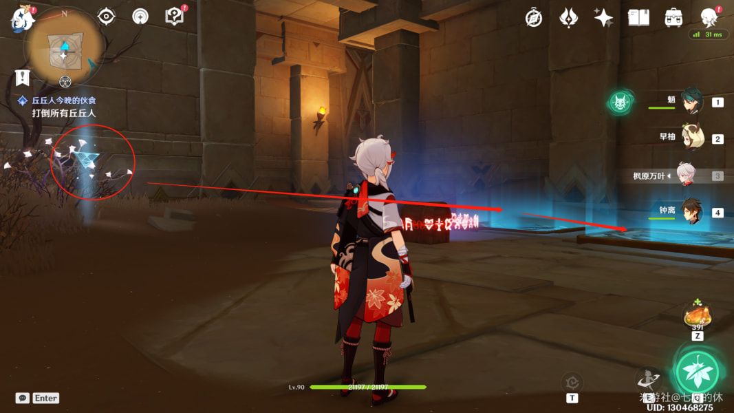 从传送点过来,先把大厅的机关从红色调成蓝色,往右边走(左边有个草神瞳!)