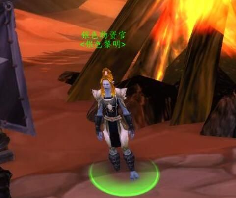 银色军需官位置如图,部落这边叫银色物资官,在正门广场的大篝火边上(有可能被打死了还没刷新,原因懂的都懂),除了售卖三件绝版饰品之外,还出售布皮锁板四类绝版护甲的肩手部位,单号毕业需要刷118个死灵符文(算了交任务那10个)。