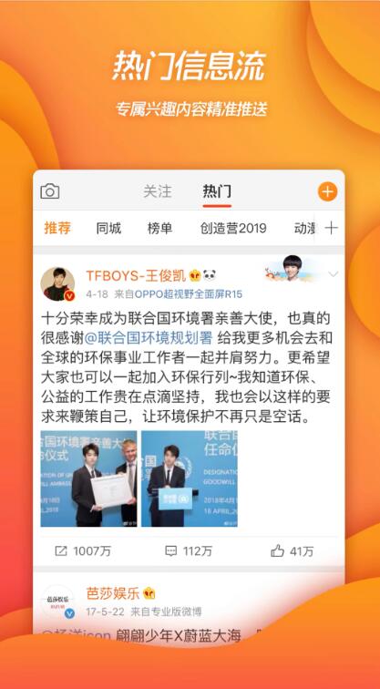 3、热门微博,热点内容迅速捕捉,推荐给你感兴趣的内容