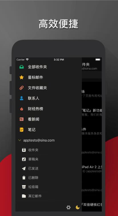新浪邮箱客户端能集中管理你全部邮件,你能便捷进入批量操作状态,轻松标记已读或重要邮件。