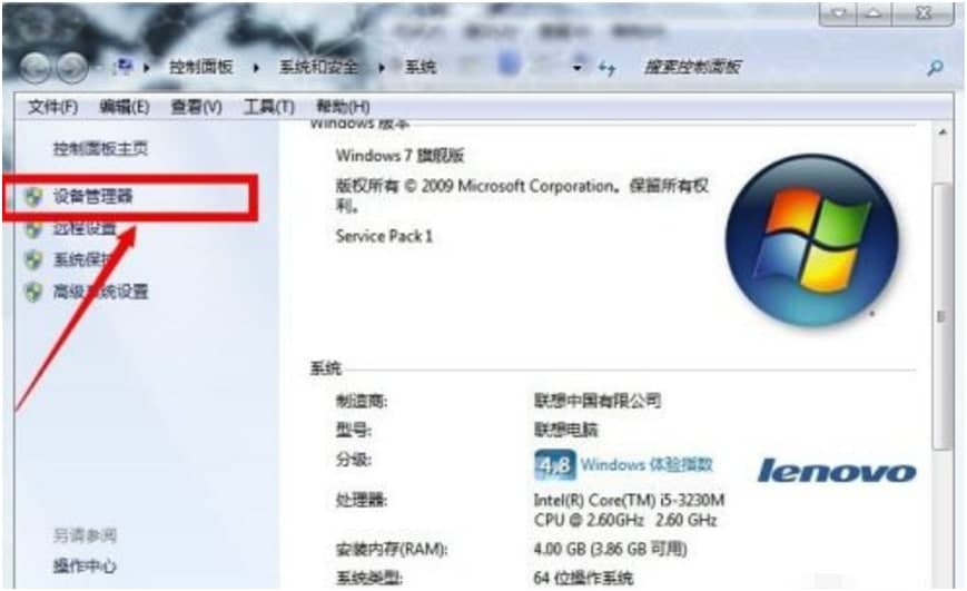 在打开的“系统属性”对话框中选择“高级”选项卡,并单击”设备管理器“。