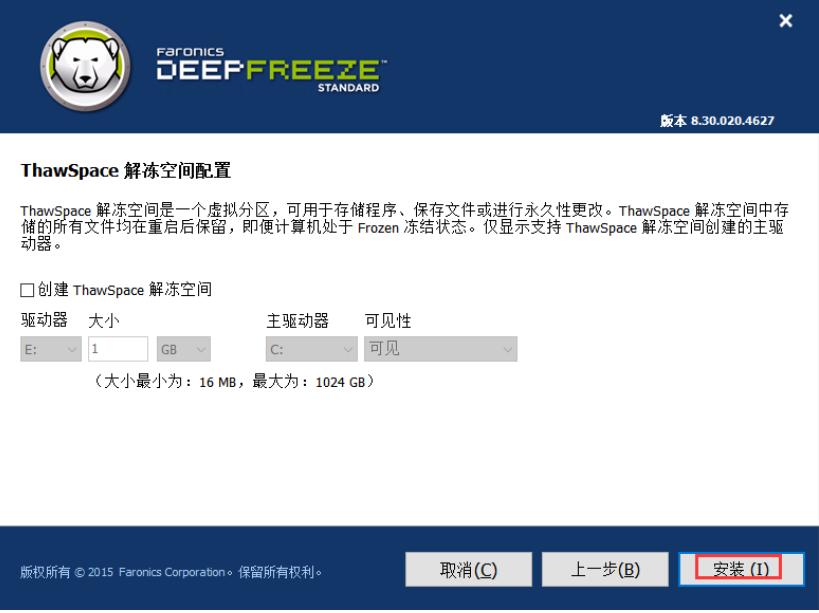 5.我们可以直接点击界面下方的安装选项,就可以安装冰点还原精灵了。安装完成后我们可以打开使用。