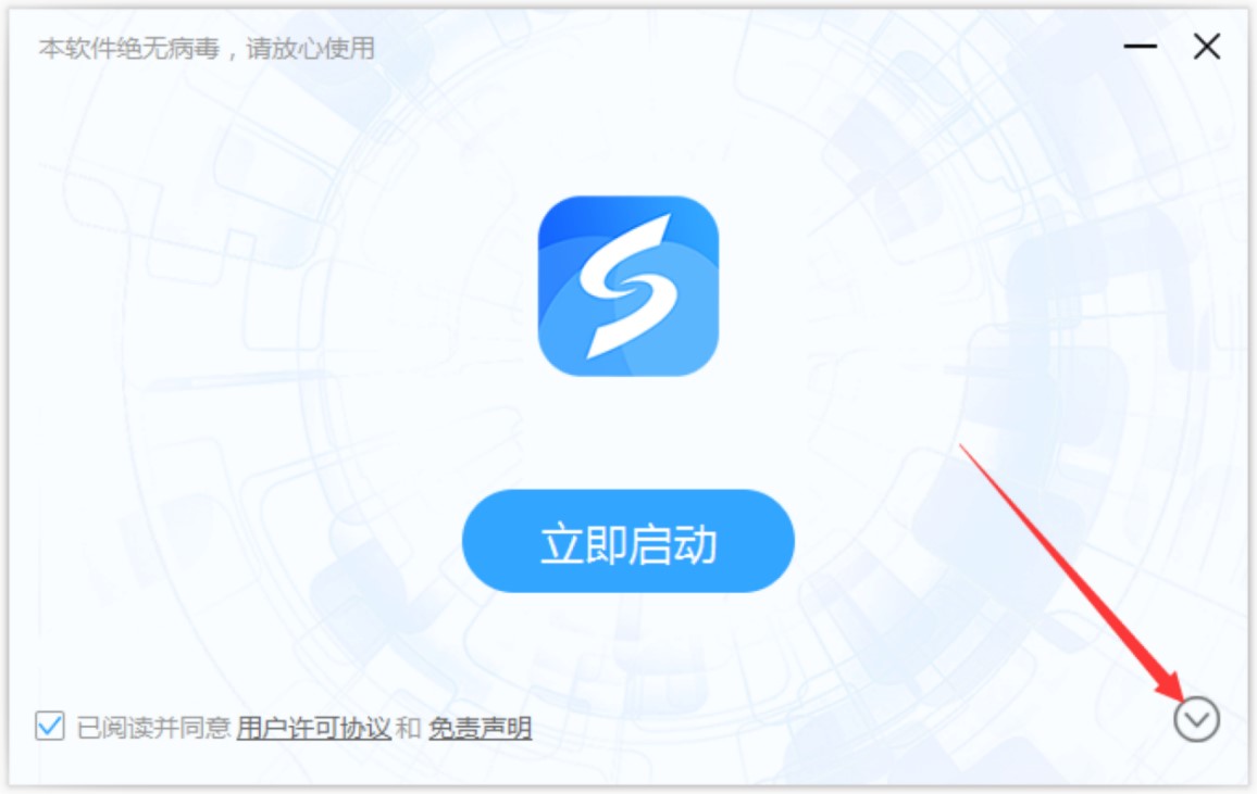 2. 我们选择点击页面中的“立即启动”选项,就会根据默认的各项安装,就能够快速的完成软件的安装,但是这样安装的方式会影响电脑的运行速度。为了更好的保护电脑,点击页面中的符号之后,就能够自定义的进行软件的安装。