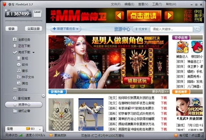 3. 增强的文件管理和界面:在快车FlashGet软件中提供有更强大的管理功能,包括文件自动分类、分组管理、下载任务备份到网络等等,能够为用户提供更完善的下载器进行使用。在使用过程中为给用户提供新鲜感和个性化的呈现,内置皮肤管理器,支持进行即时更换皮肤,在线快速下载随时进行换肤。