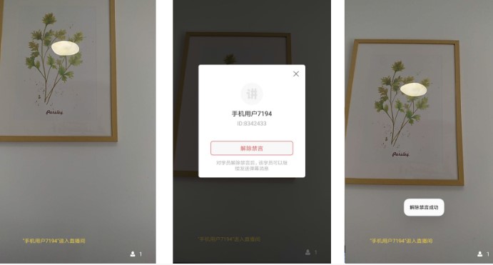或者是点击【禁言列表】,点击【解除禁言】,也可以解除禁言状态。注意:直播结束的课程,不能解除禁言,请讲师们在课程中禁言或解除禁言。