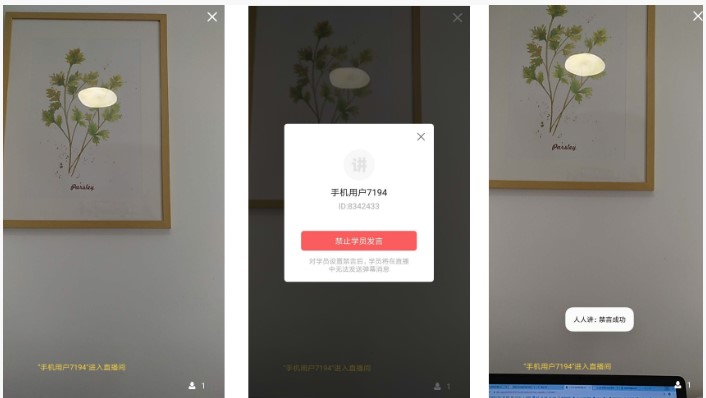 许多用户在下载的人人讲直播助之后不知道如何使用今天小编带来一些功能操作,帮助大家更好的使用。其中就包括了解除禁言或者对学员进行禁言的操作,如下图所示。