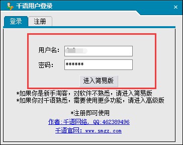 2.首先输入用户名和密码进行登录,没有账号的可以先注册,点击左上角的“注册”即可进行注册(1000语言简化版和复杂版帐户不通用)
