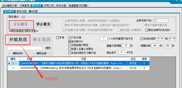 6.分组发送设置,请先获取促销位,为各组设定促销位,再点击打开微信和QQ群。