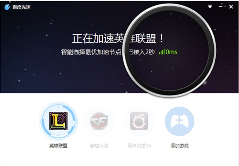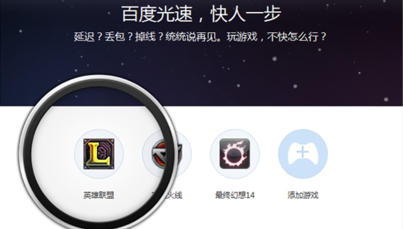 百度光速游戏加速器是百度打造的游戏加速工具。百度光速游戏加速器帮助玩家解决了游戏中延迟高、掉话多、登录难等问题。具有全运营商节点部署、高效数据传输等技术优势。它还具有云端智能选点技术,减少繁琐的操作。加速效果显著,百度光速游戏加速器目前支持三款游戏,英雄联盟、穿越火线、DOTA2。